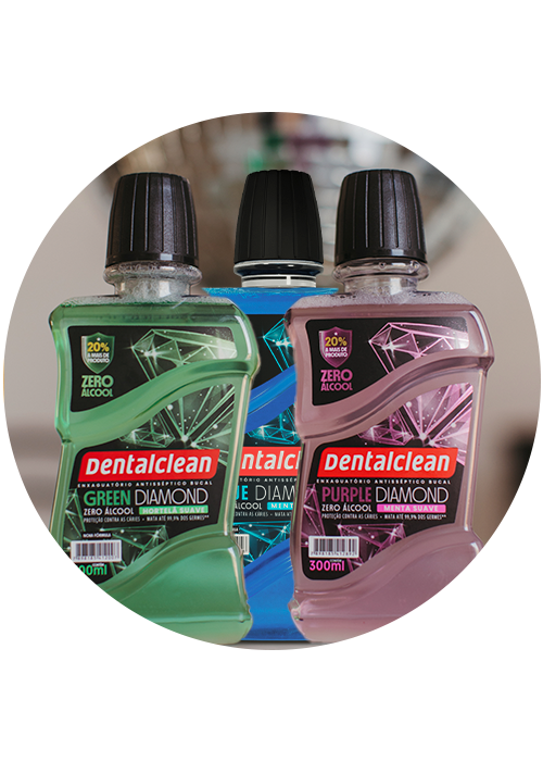 Recomendada por dentistas, a linha de antissépticos bucais Diamond Zero Álcool ajuda a eliminar os germes que causam placa bacteriana e gengivite. Sua fórmula alcança até os espaços mais difíceis da boca, onde a escova e o fio dental não chegam. Disponível em três sabores refrescantes, também contribui para a prevenção do mau hálito e das cáries.