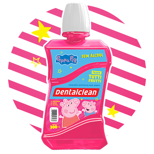 Sem álcool e com sabor Tutti Frutti, o enxaguante bucal infantil da Peppa Pig Dentalclean completa a higienização oral de seus filhos, mantendo os dentes protegidos da cárie, tártaro e placas.