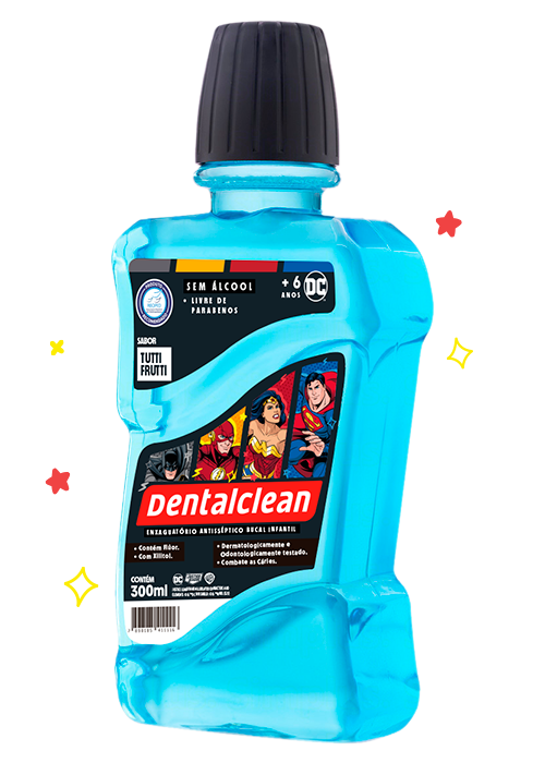 O antisséptico bucal infantil da Liga da Justiça foi especialmente desenvolvido para crianças, que querem deixar o sorriso poderoso e protegido contra seus inimigos, as cáries!