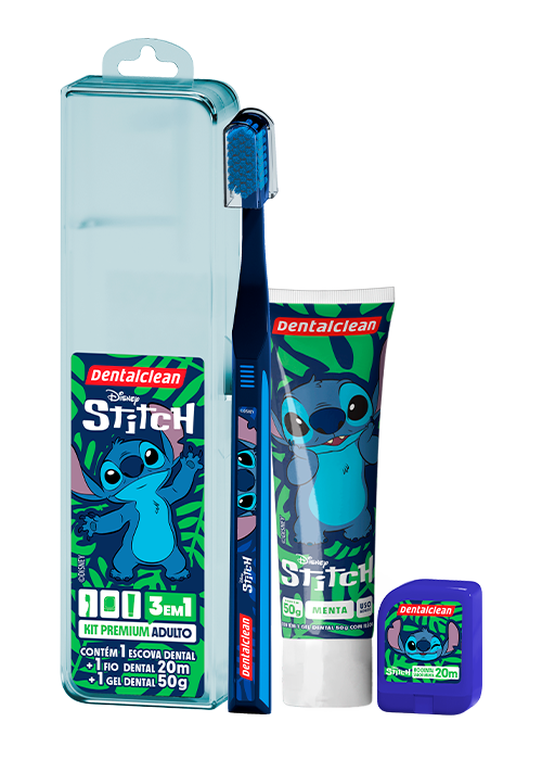 A linha Dentalclean Stitch traz o colorido e a alegria para o seu dia-a-dia. Com design exclusivo, cores descoladas e cerdas macias, leve o Stitch para ser a estrela do seu banheiro!