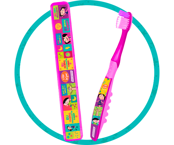 Escova com cerdas macias e pontas arredondadas, proporcionando mais proteção para os dentes e gengivas. Ideal para levar para escola, passeios e viagens.