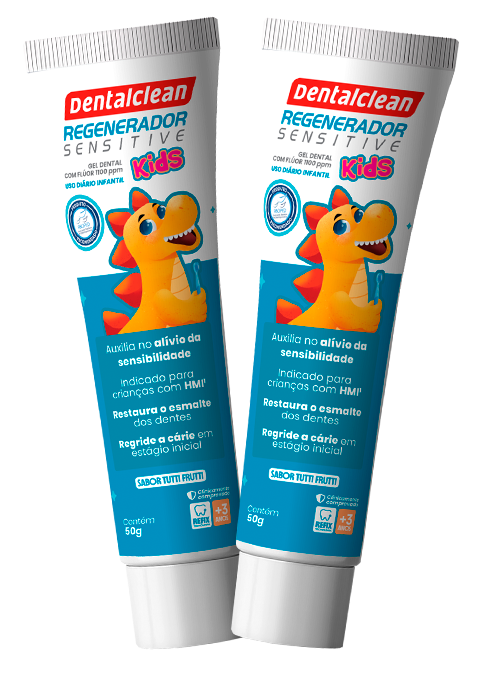 Com a tecnologia REFIX®. Esse gel dental infantil tecnológico, é o primeiro produto no Brasil para sensibilidade nos dentes das nossas crianças. Durante a escovação, a fórmula bioativa presente no creme dental em gel liga-se ao dente, captando as partículas dispersas no meio bucal, principalmente o cálcio, e esse complexo forma uma camada híbrida contendo hidroxiapatita enriquecida com silício.