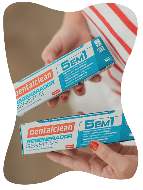 Leve toda Tecnologia Dentalclean para o seu dia a dia! A cada uso do Gel Dental Regenerador Sensitive Dentalclean 5 em 1, a fórmula exclusiva repõe os minerais do esmalte do dente. Estes minerais se integram à arcada dentária e regridem cáries em estágio inicial.